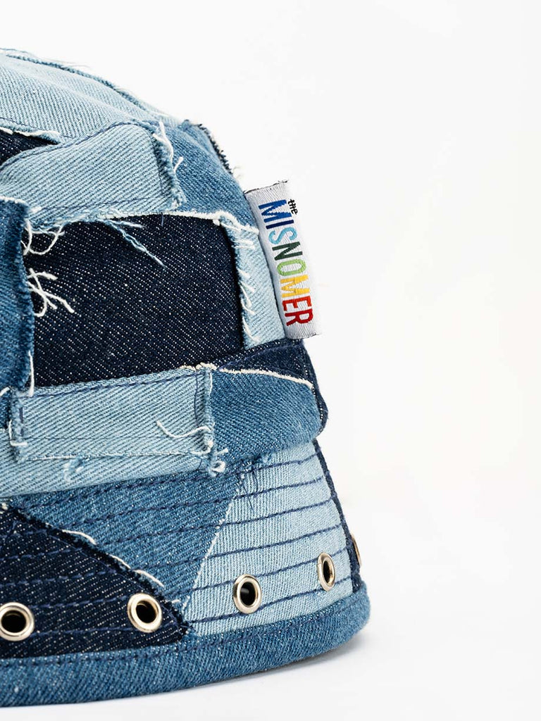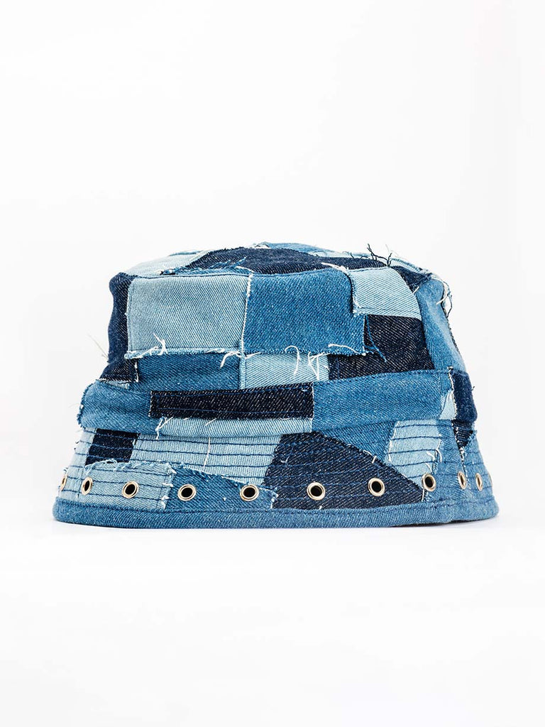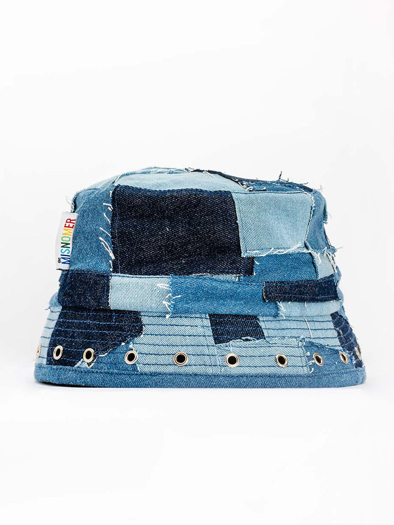 — hand-made with patchwork of denim in tonal shades of blue using leftovers from our previous collection