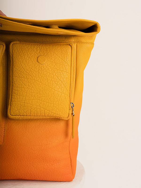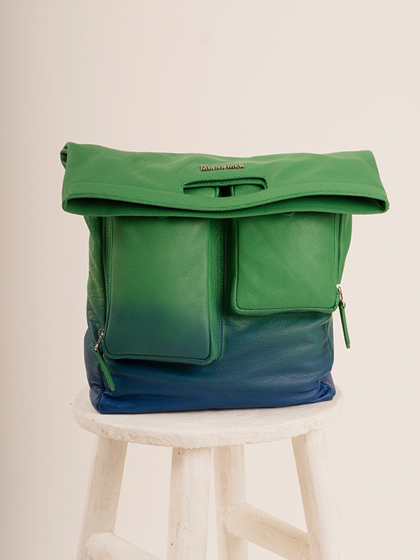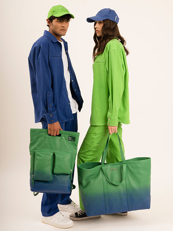 — multi-functional backpack that converts into a tote! — special gradient leather available in just Green + just Blue; just Yellow + just Orange; classic style available in just Black — ft. our ™ metal logo — ft. inner compartment which fits 14” Macbook Pro — fits all your “stuff” — made with 100% real, premium leather sourced from Leather Working Group Tannery — a true investment piece that'll last for decades! — recycled polyester lining — gender neutral — sustainably produced in India — dimensions (as a backpack) — 30 x 40 x 5cm (L x H x W) — dimensions (as a tote) — 30 x 55 x 5cm (L x H x W) — wipe with a soft dry cloth