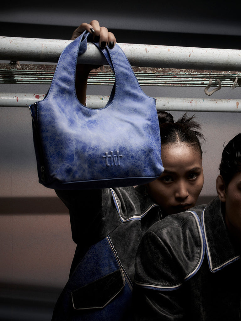 — upcycled from leftover crackle leather from our previous collections