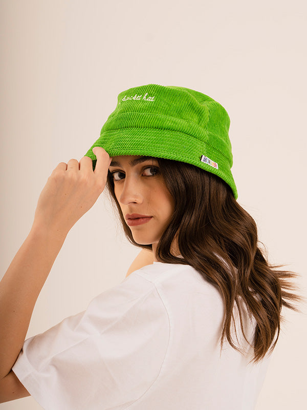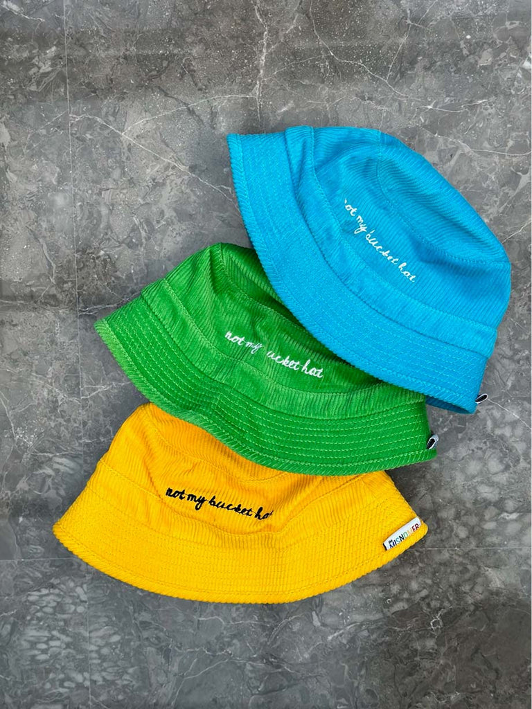 — hand-made with cotton corduroy so you’ll want to wear 'em all summer long! — embroidery ft. “not a bucket hat” that’ll turn heads — gender neutral — sustainably produced in India — one size fits all
